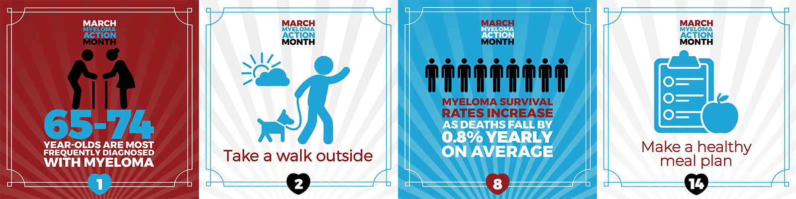 Zachęcamy również do przyłączenia się do akcji za pośrednictwem portali społecznościowych. Dzięki swojemu zaangażowaniu możemy nie tylko pomagać w budowaniu świadomości na temat choroby, jej objawów i sposobu diagnozowania, ale okazujemy także wsparcie i solidarność z pacjentami chorującymi na szpiczaka. Na stronie mam.myeloma.org znajdą Państwo przygotowany kalendarz z informacjami na temat szpiczaka, gotowy do udostępnienia w social mediach.