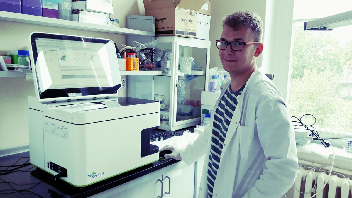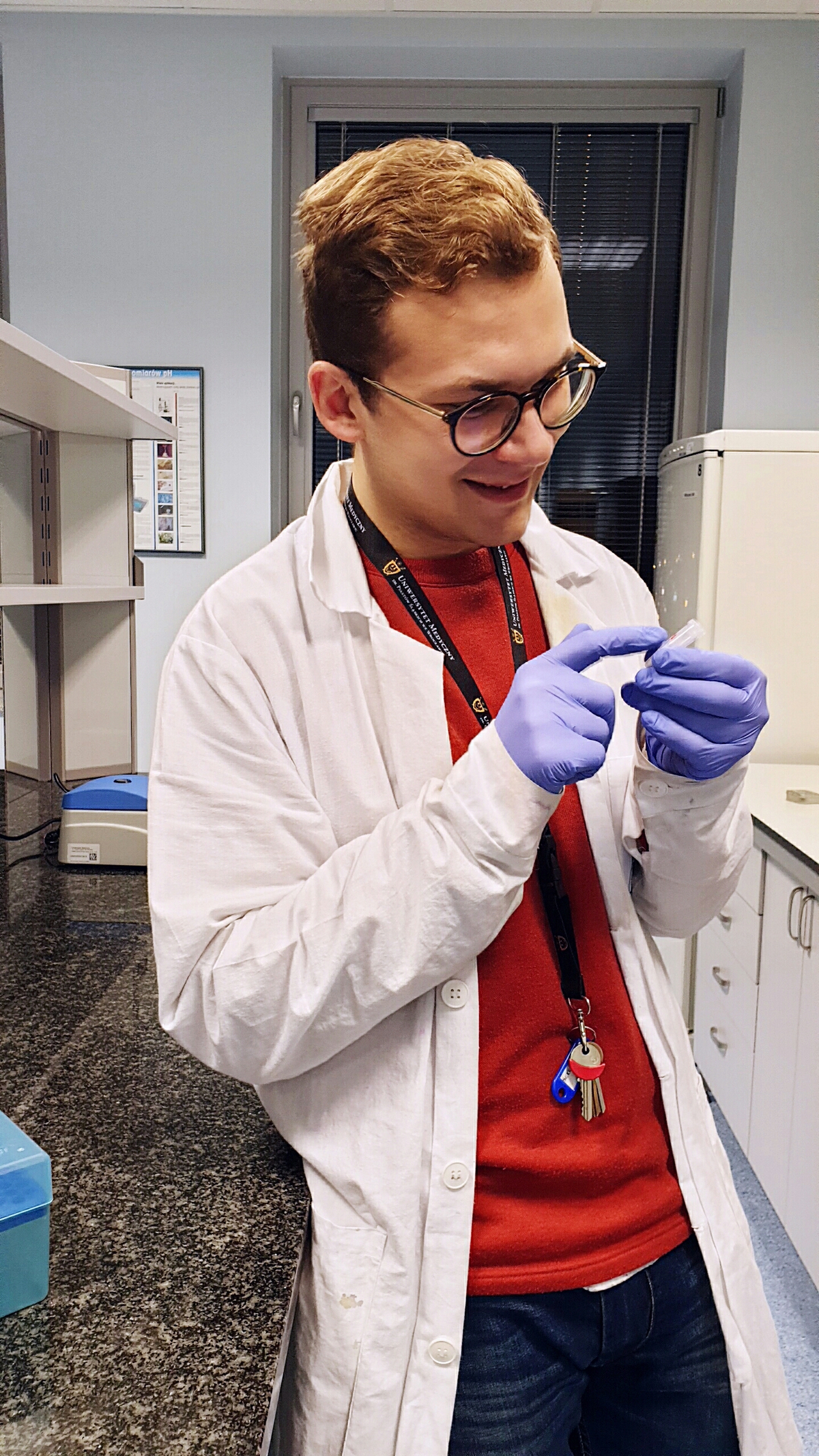 Już cztery lata w laboratorium pogłębiam rozumienie procesów biologicznych i molekularnych podstaw funkcjonowania organizmów w ramach biologii medycznej – spragniony zajęć wymagających kreatywności, rozwiązywania jakiegoś problemu badawczego, eksperymentowania. I w ten sposób po prostu wpadłem po uszy, zakochałem się w nauce.