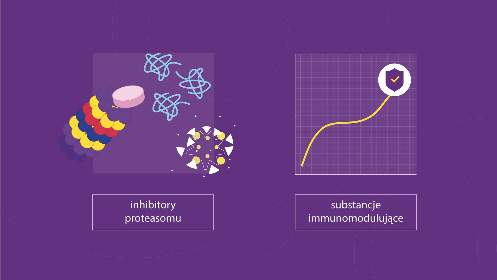 Inhibitory proteasomów to leki, które blokują rozpad białka, w szczególności komórek szpiczaka, prowadząc w ten sposób do ich obumierania. Substancje immunomodulujące pobudzają układ odpornościowy do walki z komórkami szpiczaka.