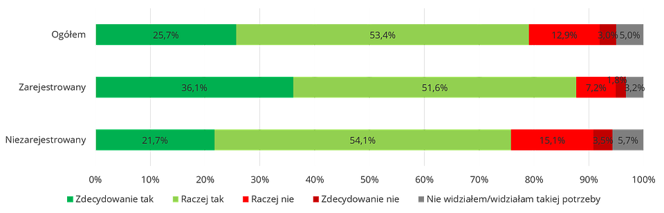 - Nieco ponad 1/5 respondentów udzieliła w tej kwestii odpowiedzi negatywnej, z czego co dwudziesty respondent nie włączył się w działania pomocowe, ponieważ nie widział takiej potrzeby.