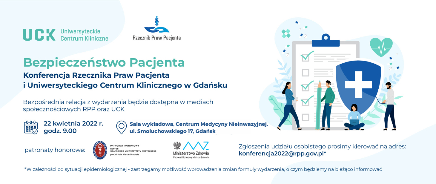 W Polsce na taką konferencję, organizowaną pod patronatem Ministra Zdrowia, zapraszają Rzecznik Praw Pacjenta Bartłomiej Chmielowiec i Uniwersyteckie Centrum Kliniczne w Gdańsku. Wydarzenie odbędzie się 22 kwietnia 2022 r. w godz. 9:00-17:00, w formule hybrydowej (na żywo w Gdańsku oraz online). Skierowane jest do decydentów, pacjentów, studentów, środowisk naukowych, specjalistów z zakresu ochrony zdrowia oraz zdrowia publicznego. Dowiemy się jakie są ostatnie doświadczenia polskich szpitali, na czym polega kultura bezpieczeństwa pacjenta w Polsce, a także jakie są wyzwania systemu na przyszłość z perspektywy pacjenta.