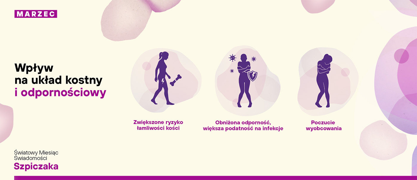 Istotnym aspektem jest również wpływ choroby na układ kostny i odpornościowy. Zmiany osteolityczne, zwiększone ryzyko złamań oraz ogólna kruchość kości wymuszają ostrożność w ruchu i planowaniu aktywności. Jednocześnie obniżona odporność zwiększa podatność na infekcje, co oznacza konieczność wdrożenia dodatkowych środków ostrożności w codziennym funkcjonowaniu – od ograniczenia kontaktów społecznych w okresach zwiększonego ryzyka po większą dbałość o higienę i profilaktykę zdrowotną.